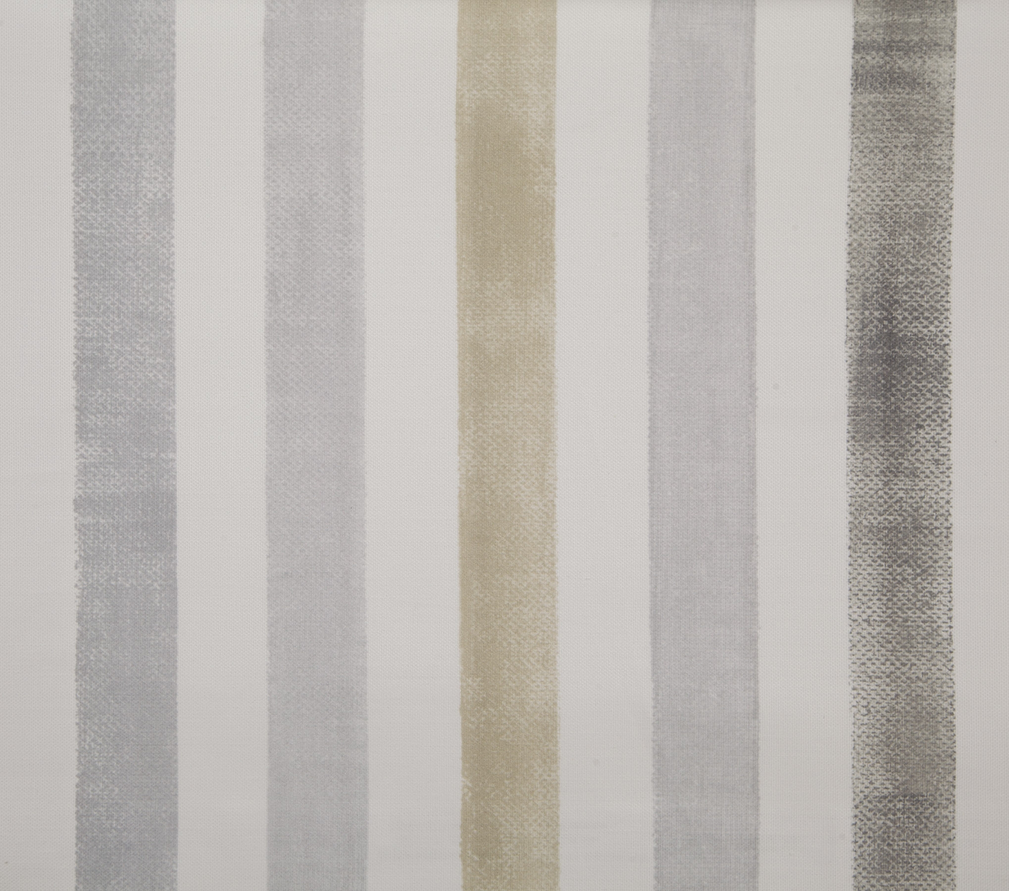 Ekskluzywna tkanina o wysokiej zawartości bawełny. Tkana na wzór płócienny, delikatna w dotyku. Wzór w dosyć symetryczne, szerokie, różnokolorowe pasy. Kolorystyka neutralna, biało szara, z ciepłym zielonkawym akcentem, dająca duże możliwości kompozycyjne, jeżeli chodzi o dodatki. Specjalny druk daje wrażenie ręcznie malowanych tkanin. Tkanina idealna na zasłony, rolety, poduszki i szeroko pojęte artykuły dekoracyjne. Kolekcja (ze względu na różnorodność) bardzo uniwersalna, odnajdzie się w wielu stylach dekoratorskich, zarówno jako motyw wiodący, jak i przełamanie schematu.